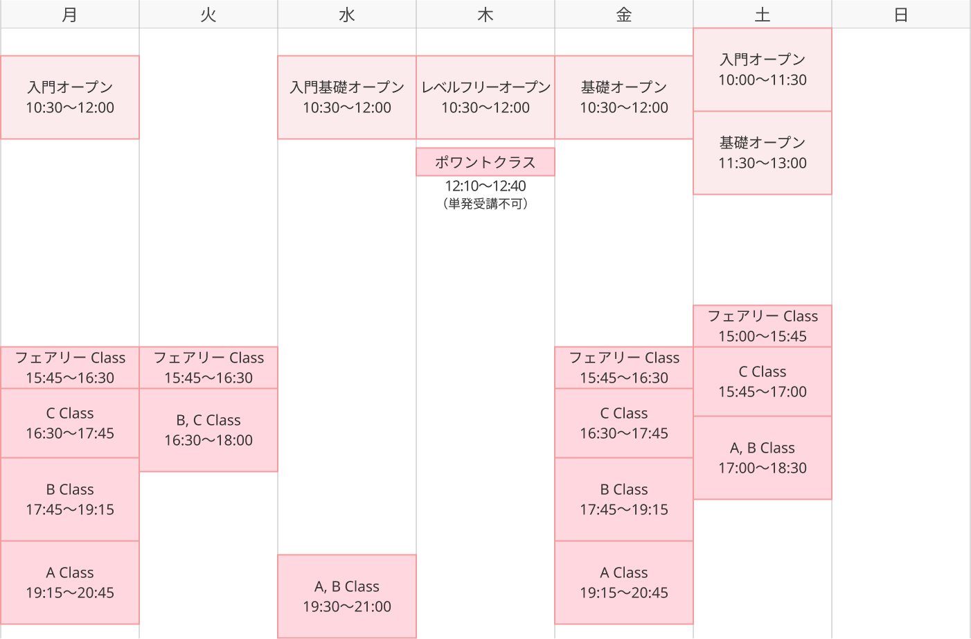オープンクラスの中からご希望の曜日とクラスを決めて受講していただけるクラスです